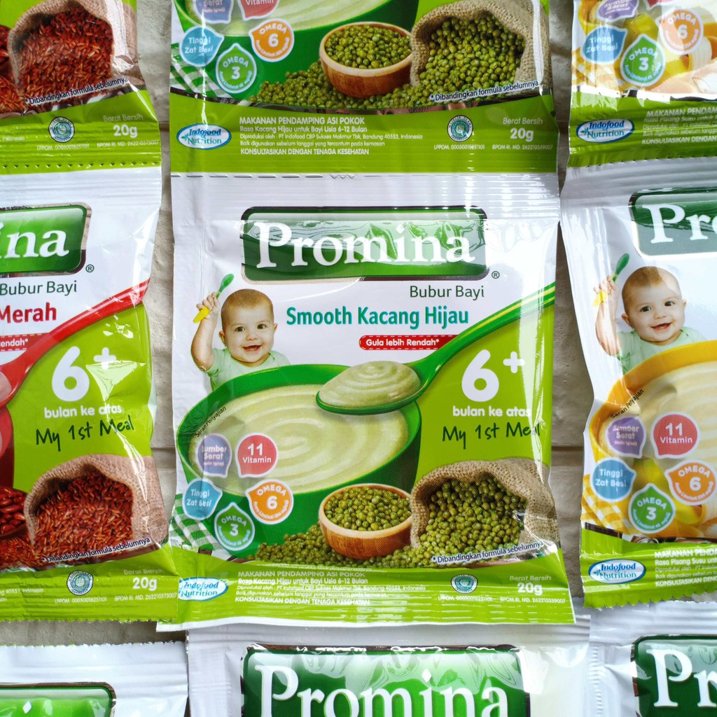 Bubur bayi dengan kacang hijau untuk bayi umur 6 bulan keatas. Bubur promina tersedia dalam berbagai varian rasa. Promina adalah salah satu bubur bayi yang cocok dijadikan pendamping asi. Promina bubur bayi kacang hijau memiliki tekstur halus untuk pengenalan makanan padat pertama si kecil. Penyajian instan promina marie susu makanan selingan untuk bayi.